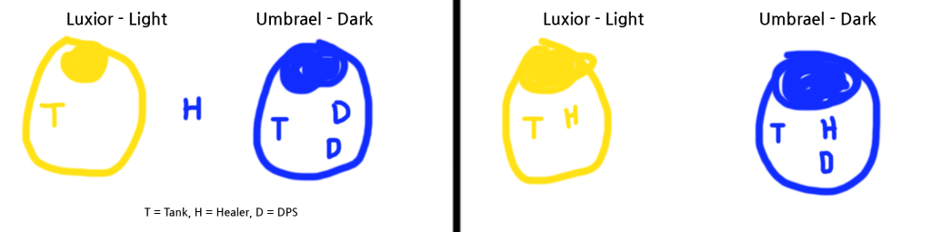 First of all, there is a pattern that makes the boss teleport randomly to anyone with the same type. If the tank is the only one with, for example, a light type, the Luxior will always teleport to the tank, and shoot auras to the tank. This makes the tank’s life easier, because there are going to be less unexpected situations happening, and Luxior will have less mettle stacks, which makes it easier for an inexperienced tank. Another option available is to have 1 tank and 1 healer pair up and the DPS get any type. This helps the tanks get consistent heals, because the healer will always be close to the tanks, and will help 2 inexperienced healer keep their tanks up. It really depends on your party.